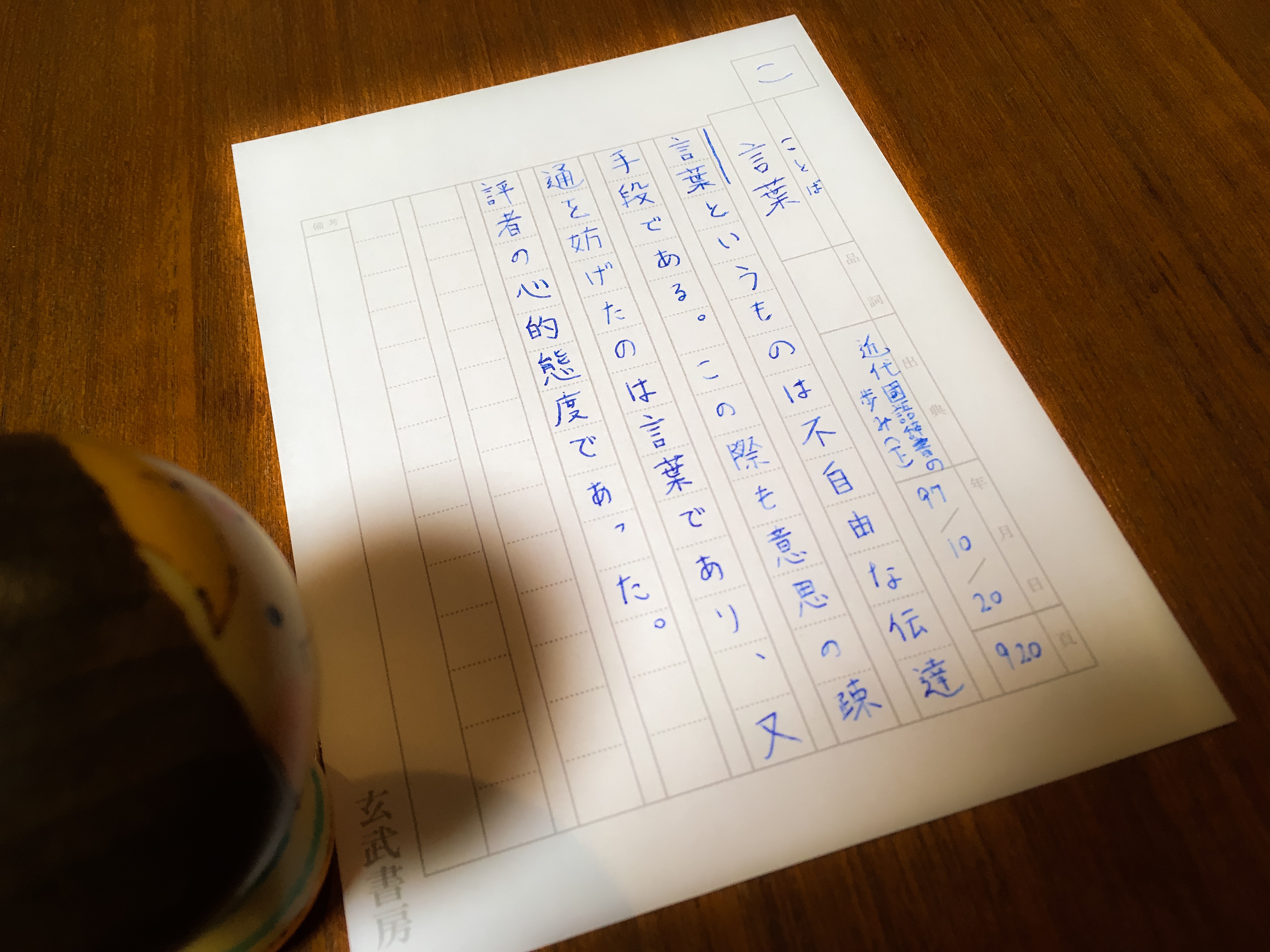 舟を編む#2:松本先生の用例カード nishinerima 2016年10月20日 舟を編む#2:松本先生の用例カード2016-11-01T00:51:22+00:00 用例カード, 舟を編む 舟を編む2話が放送されたので、松本先生にお会いして用例カードをいただいてきました。 というネタ。 出先できちんと視聴できていないので、2話については帰ったらもう少し何か書くと思います。 ちなみに海の画像は合成ではありません。こんな写真でも撮るのにけっこう苦労しています。 没ショット。風が強くてまっすぐ持てない。 (追記)予約投稿の時刻設定を誤って、2話放送前に記事が投稿されてしまったようです……現地18時投稿のつもりが日本時間18時になってしまった。¡Mierda! Related Posts 舟を編む#9:亀がかわいい 舟を編む#8:〈玄学〉のポスターから話が脱線していく 舟を編む#7:辞書の名義貸し